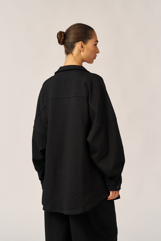 BLACK FRENCH TERRY OVERSIZED BUTTON-UP JACKET
