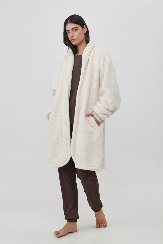 KNEE-LENGTH FLEECE JACKET IN CREAM