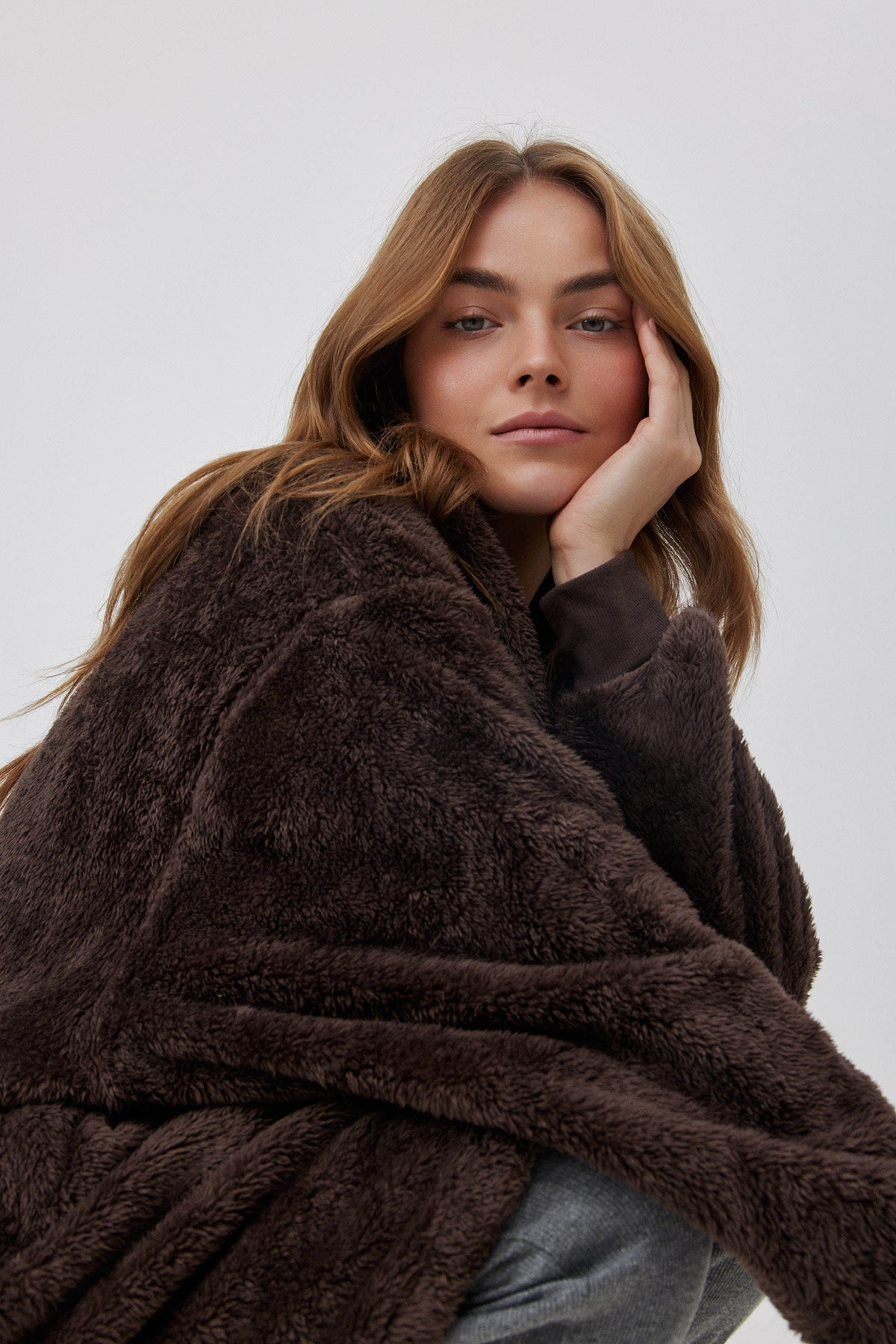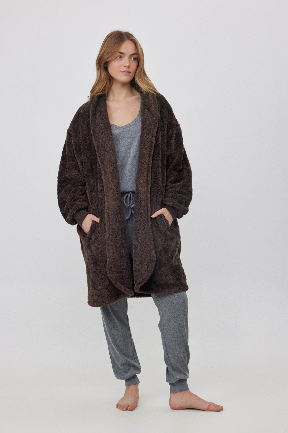 KNEE-LENGTH FLEECE JACKET IN BROWN