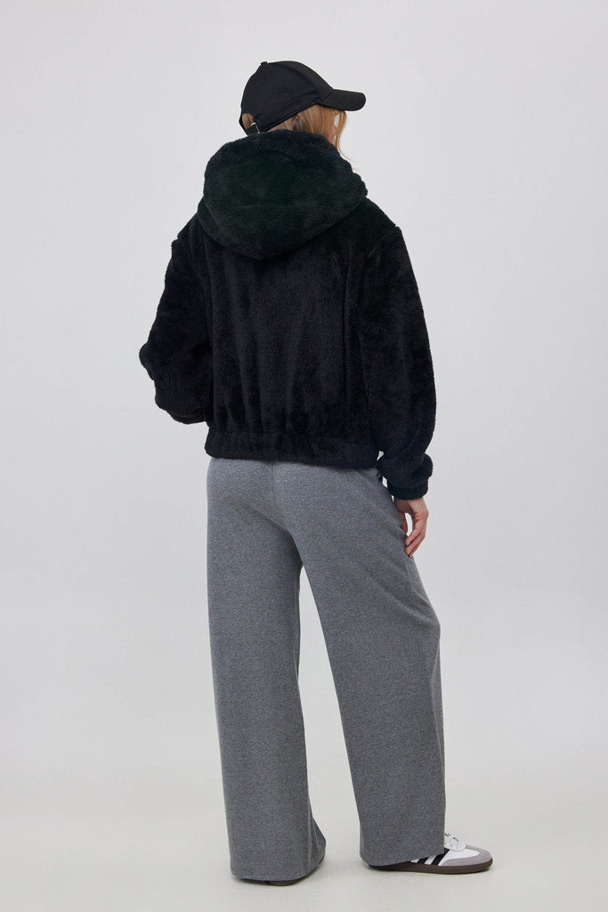 FLEECE JACKET WITH FRONT ZIP IN BLACK