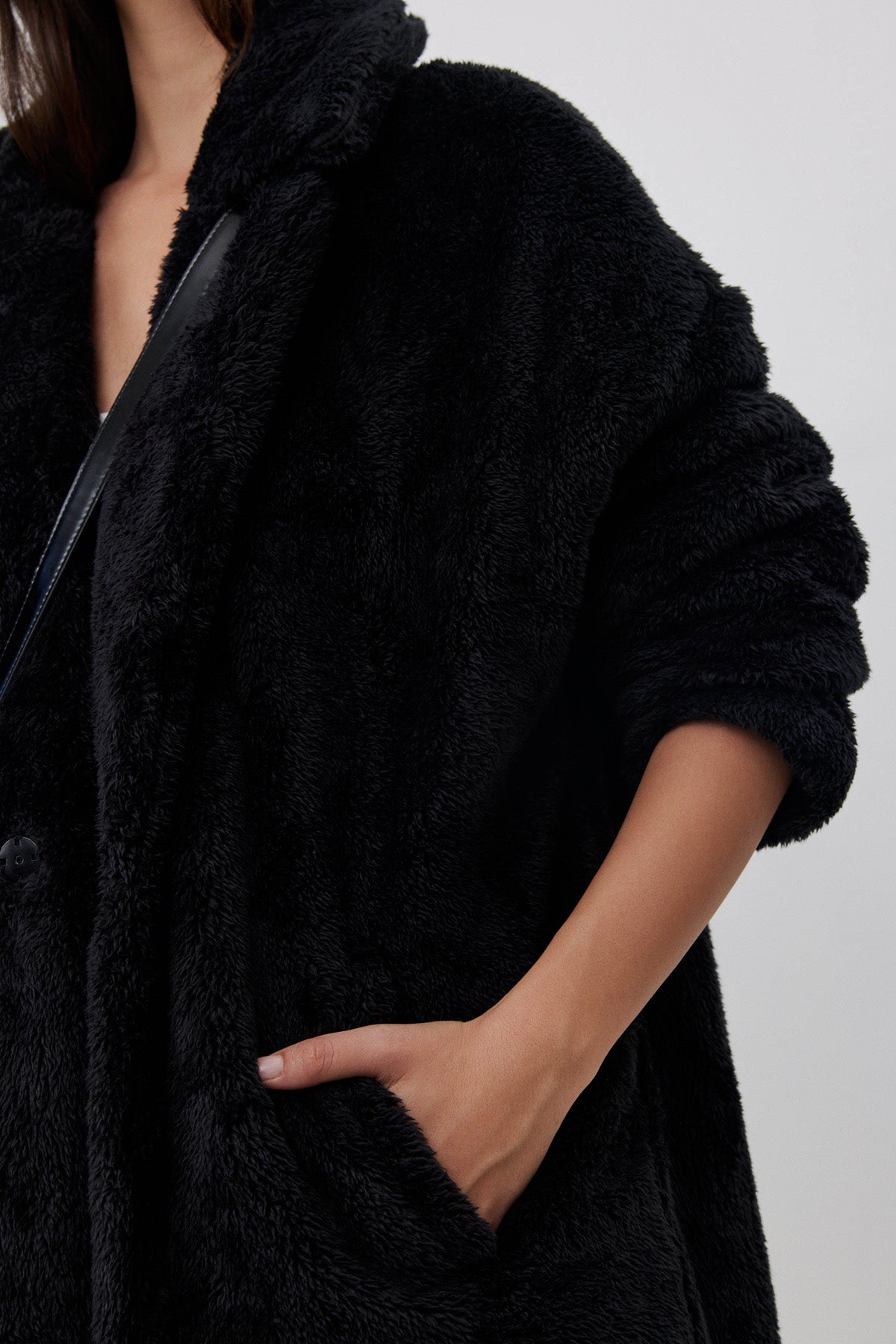 LONG FLEECE JACKET IN BLACK