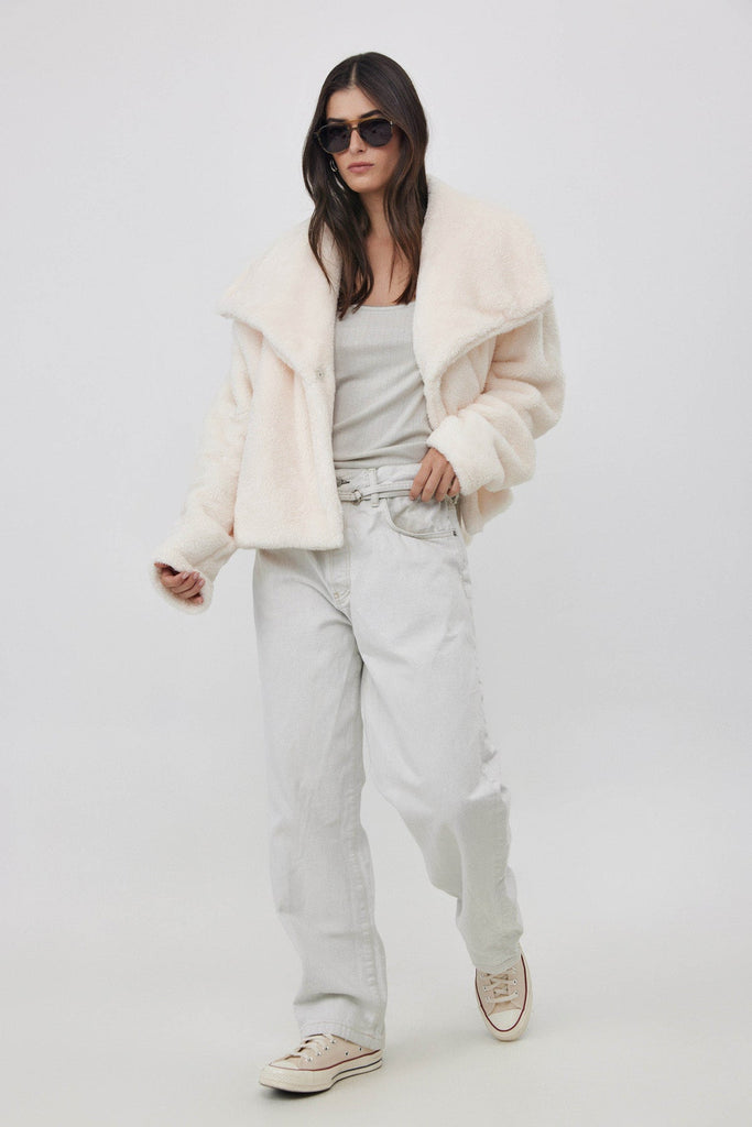 SHORT FLEECE JACKET WITH WIDE COLLAR IN CREAM