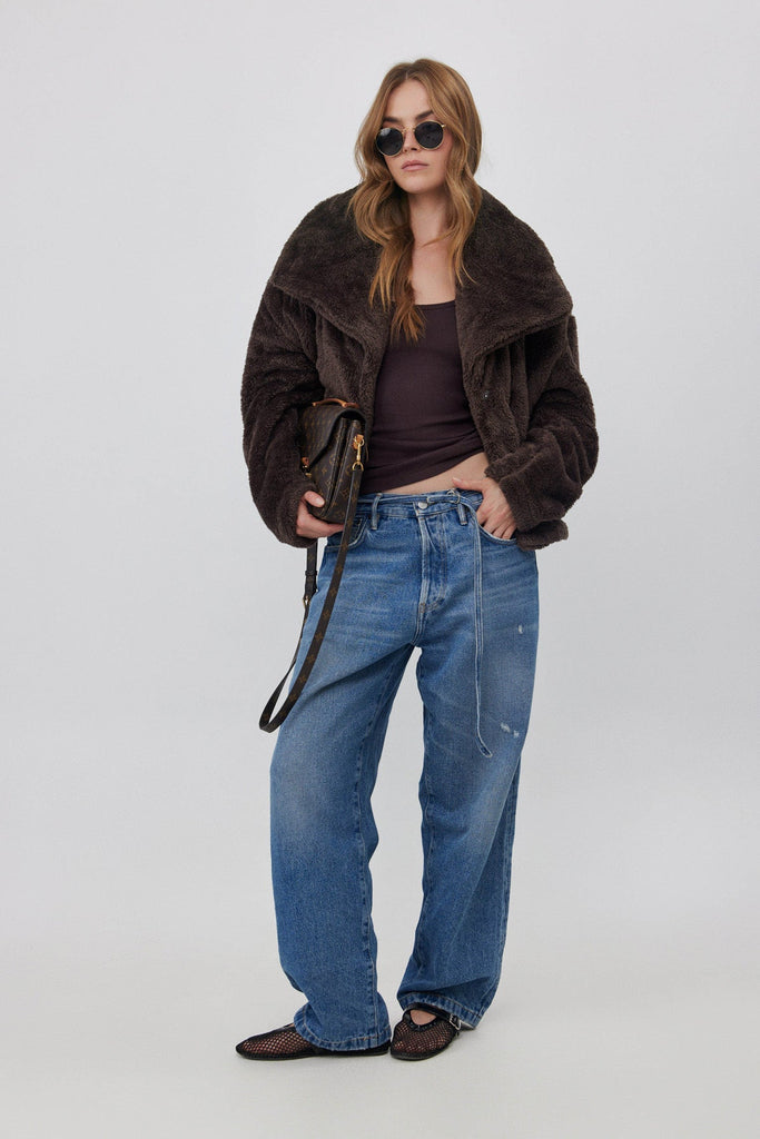SHORT FLEECE JACKET WITH WIDE COLLAR IN BROWN