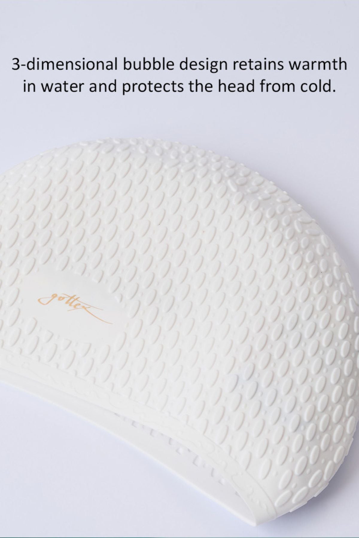 Made from extra-flexible silicone with added volume to accommodate long hair, helping protect it from chlorine exposure.